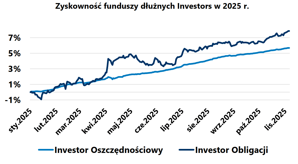 Źródło: Investors TFI, obliczenia własne. Dane na 6.11.2025 r., zyskowność od początku roku.
